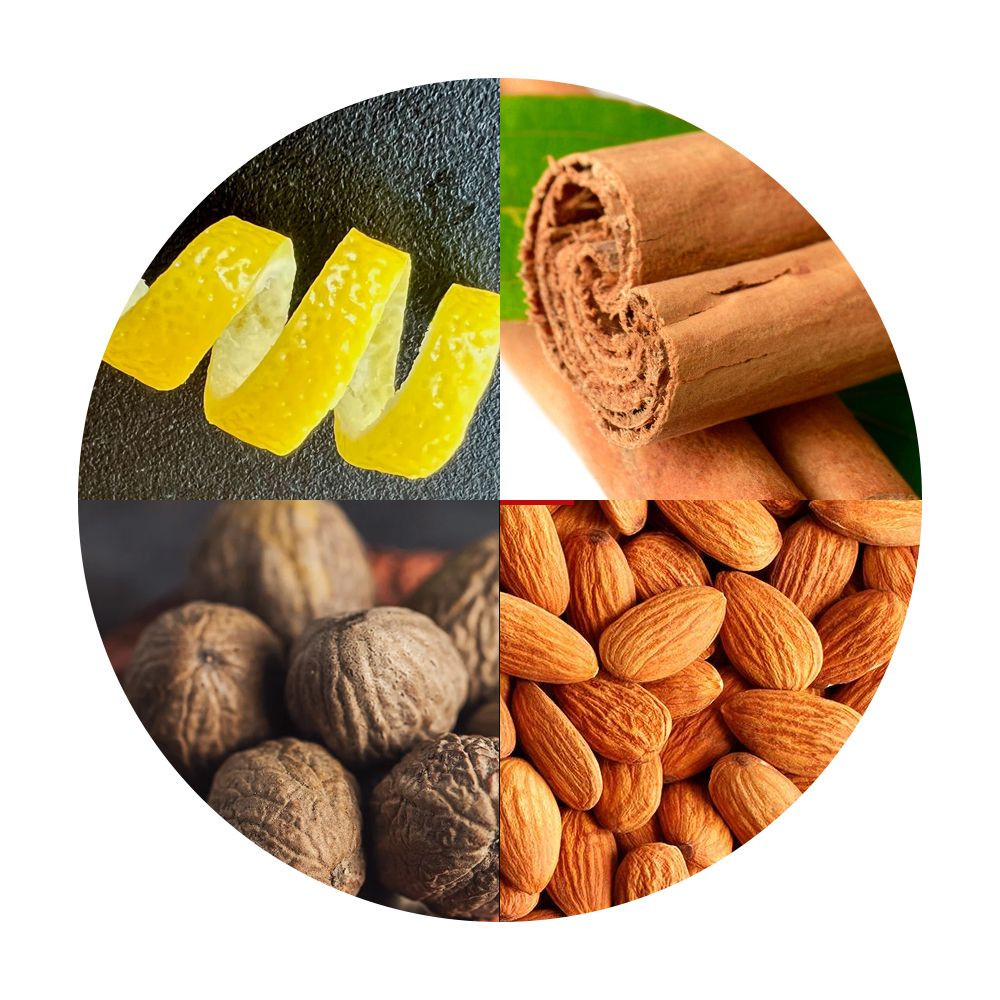 A citrom és az édes mandula illata úgy egészíti ki a fahéj illatát, mintha egy fahéjas marcipán aromáját éreznénk. A vele készült gyertyák édes, fahéjas, kissé fanyar illattal töltik be a teret. Az illat egészében harmonikus és kifinomult, amely az édesség és a fűszeres melegség tökéletes egyensúlyát hozza létre.