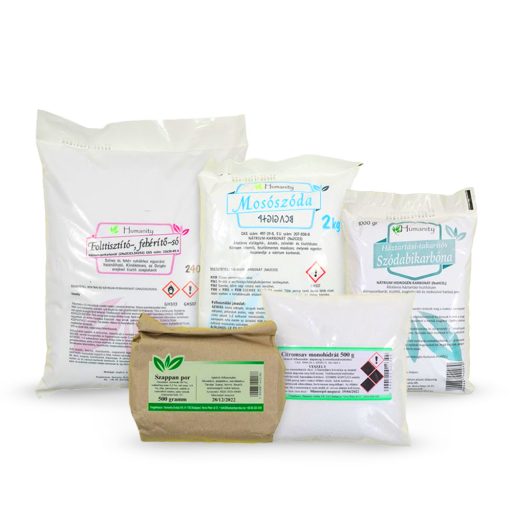 Szódabikarbóna – környezetbarát súroló, folttisztító és szagtalanító tisztítószer. Segít elpusztítani a hűtőben megtelepedő, kellemetlen szagokért felelős baktériumokat. Felületsérülés nélkül használható súrolásra, még makacs foltok esetén is. Alkalmas tűzhelyek, üvegfelületek tisztítására, valamint az eldugult lefolyók kezelésére.