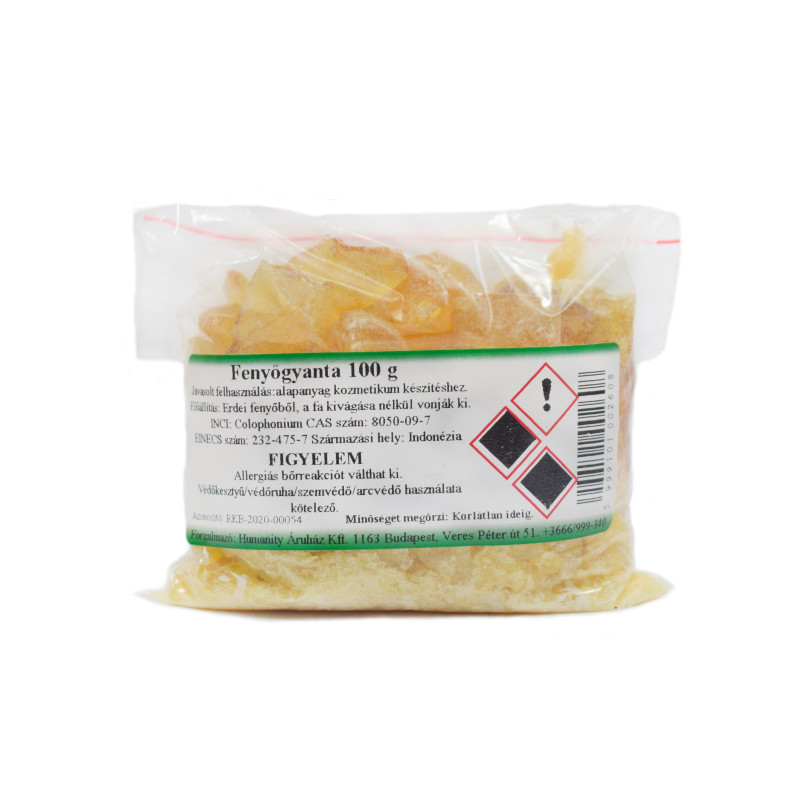 Fedezd fel a Fenyőgyanta - Kolofónium természetes erejét, amely az erdei fenyő gyantájából készült, kristályos, szilárd anyag. Nemcsak szappanok szilárdságát növeli, hanem kiváló bőrápoló tulajdonságokkal is rendelkezik. Ideális természetes kenőcsök alapanyagaként, amelyek segíthetnek a reuma, pattanások, sebek és ráncosodás kezelésében. Tökéletes választás, ha szeretnéd kihasználni a természet gyógyító erejét a mindennapokban.