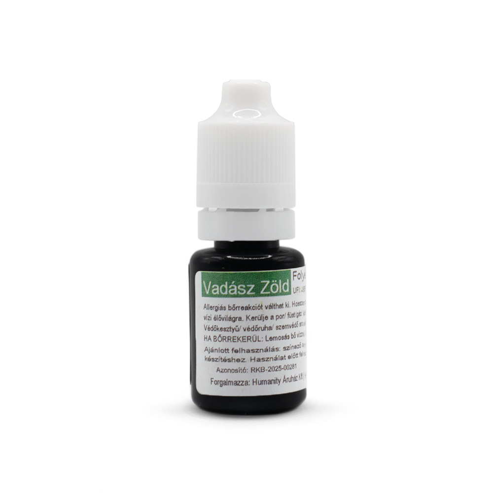A vadász zöld folyékony gyertyaszínező mély, elegáns és természetes árnyalatot ad alkotásaidnak. Ez a szín a harmóniát, a stabilitást és az erdők nyugalmát idézi meg. Használd szójaviaszhoz, repceviaszhoz vagy paraffinhoz, és gyönyörködj a lenyűgöző, egyenletes színeredményben.