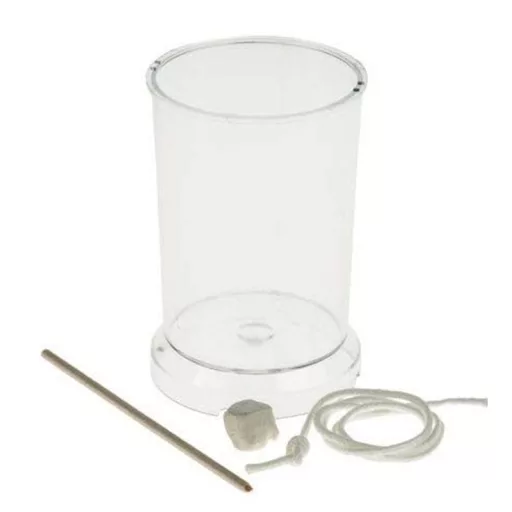 A gyertyaöntő csomag tartalma: 1 db műanyag öntőforma, 1 db kanóc, 1 db fapálcika, 1 db tömőmassza.