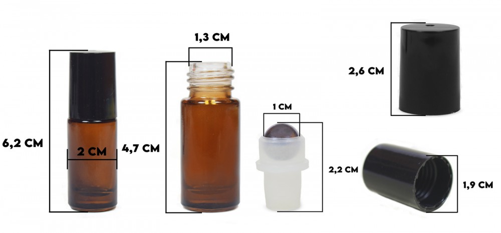 Mini golyós üveg fekete kupakkal - 5 ml