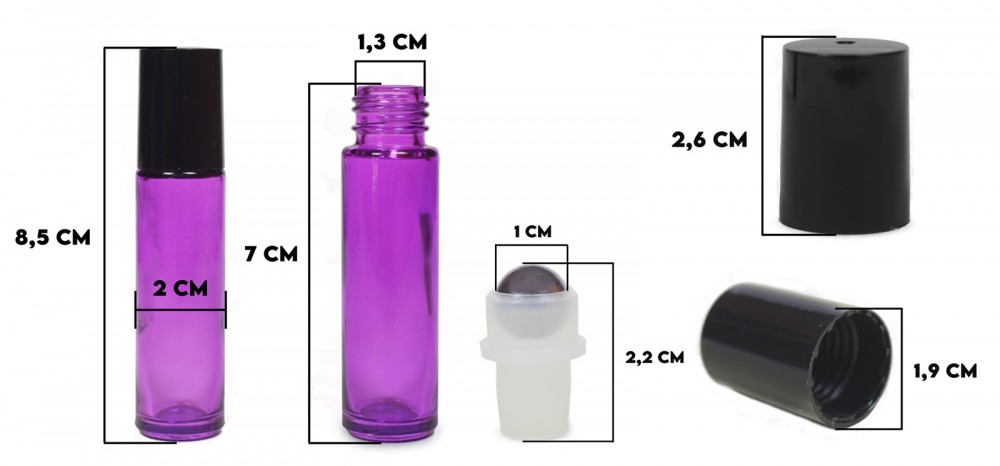 Mini golyós üveg lila 10 ml fekete kupakkal