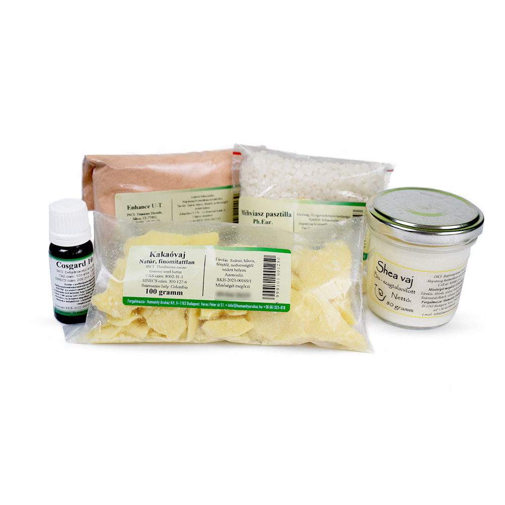 Ha az előkészületeken túljutottál, akkor az előre kimért méhviasz pasztillát melegítsd fel gőz felett egy hőálló üvegedényben, vagy főzőpohárban. A viasz felolvadása után add hozzá a kakaóvajat, a shea vajat és a kókuszolajat. Felolvadásig kevergesd őket. Amikor már folyékonyak, vagyis megolvadt a vaj és a viasz, adagold hozzá a kívánt faktorszámnak megfelelő mennyiségű Enhance UT-t úgy, hogy csomómentes legyen. Ügyelj arra, hogy ne ülepedjen le az Enhance UT a főzőpohár aljára! Kevergesd amíg ki nem hűl. Hideg vizes fürdőben segítheted a kihűlését, de ne feledkezz meg a folyamatos keverésről.