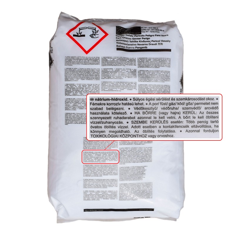 A Nátrium-hidroxid felhasználása nagy körültekintést és figyelmet igényel. A szilárd vagy tömény oldatban lévő nátrium-hidroxid égési sérüléseket, maradandó sebeket, hegeket, szembe kerülve akár vakságot is okozhat. Feltétlen tájékozódj a veszélyekről mielőtt használnád!
