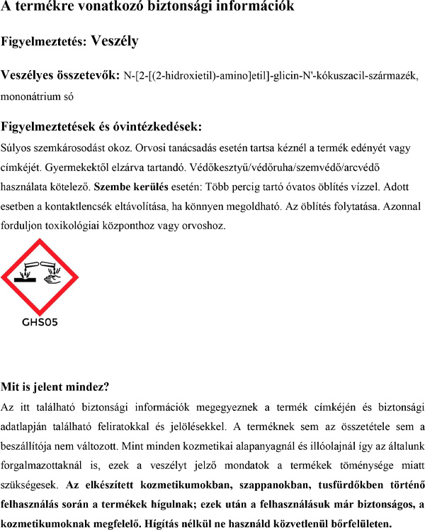 INCI: Sodium cocoamphoacetate, Glycerin, Lauryl glucoside, Sodium Cocoyl glutamate, Sodium lauryl glucose carboxylate