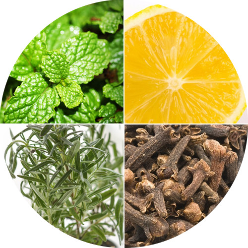 Menta, citrom, kakukkfű és szegfűszeg illóolajok keveréke.