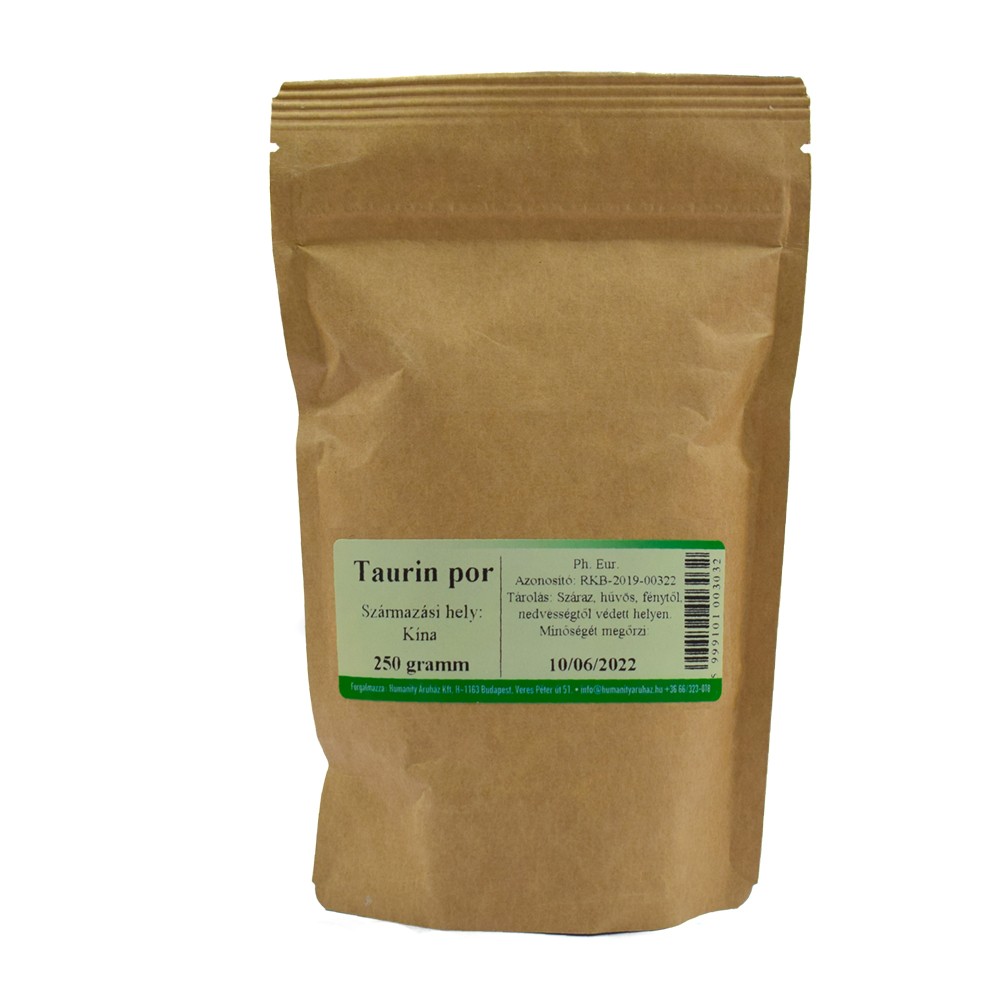 Taurint csak az állati eredetű élelmiszerekben található. A tejtermékek minimálisan tartalmazzák, a húsok egy kicsit többet (30-160 mg/100 g). A legtöbbet a tengeri herkenyűkben találhatunk (300-900 mg/100 g).