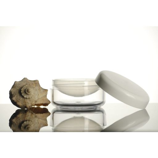 A 15 ml-es hengeres formájú SAN tégely víztiszta, áttetsző, esztétikus így a benne levő krém látszik az oldalán. Menetes nyaktípusú, fehér színű, megfelelően záródó polipropilén (PP) tetővel. Betéttel.