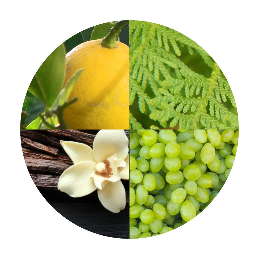 Fej illatjegyek: meyer citrom, lime héj, napérlelte szőlő
