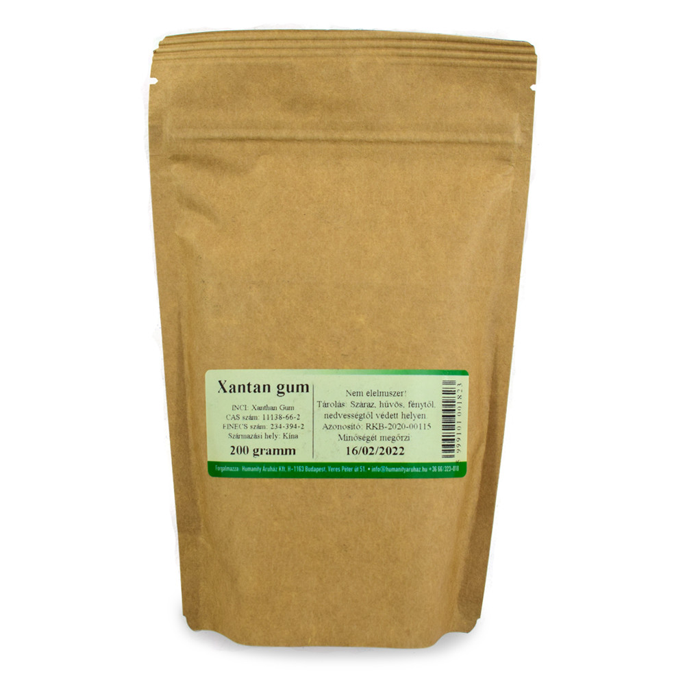 Vízben nagyon jól oldódó, fehér színű por. Semleges illatú. Élelmiszerekben is gyakran alkalmazzák E415 néven. A hőmérsékletre és a pH-ra kevésbé érzékeny ezért jól használható kozmetikumok sűrítéséhez.