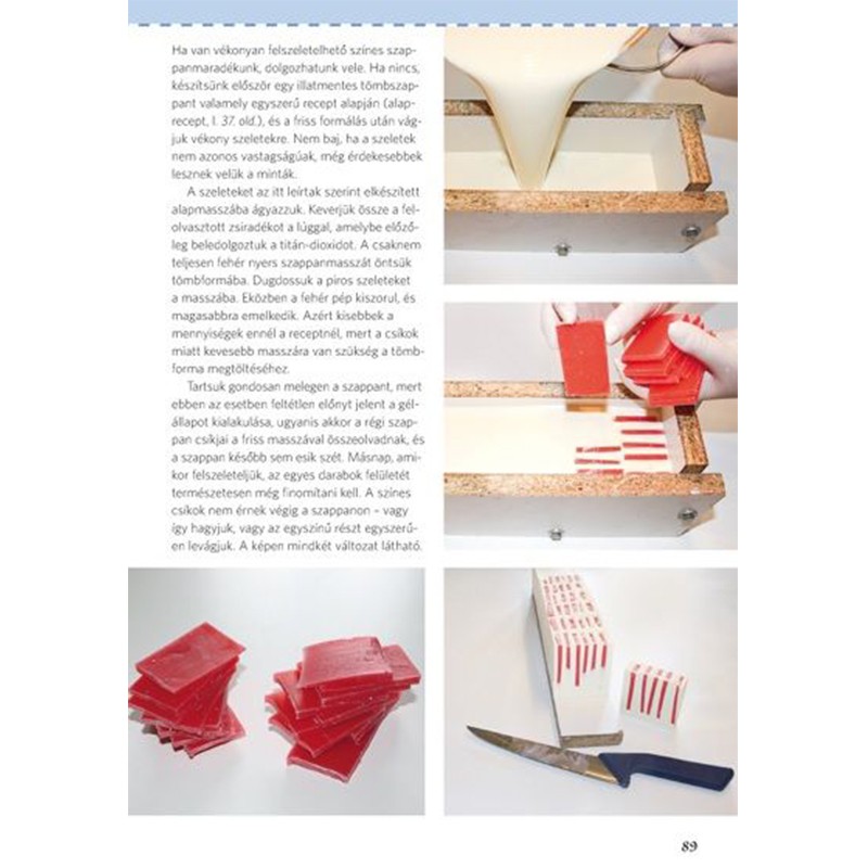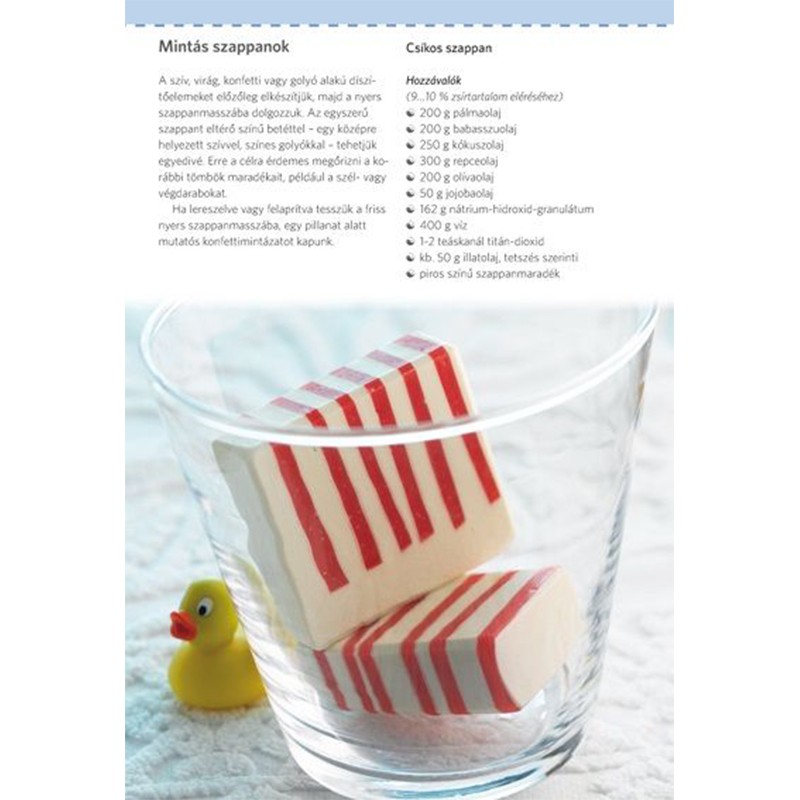 A "Szappankészítés lépésről lépésre" című könyvben, jól bevált, kipróbált recepteket gyűjtött össze az író, amelyek között mindenki talál kedvére valót. A könyv részletesen ismerteti a szappankészítés fortélyait, tudnivalóit. Hasznos segítség a gyakorlott szappankészítőknek is.